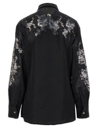 Recycled-effect satin shirt with lace inserts, long cuffed sleeves and a button closure Gender: Women Material: 100% POLYESTER Color: BLACK Made in: ANDORRA Product ID: 10094901A069311B000 *Import tax/duty will be calculated at checkout (If applicable)