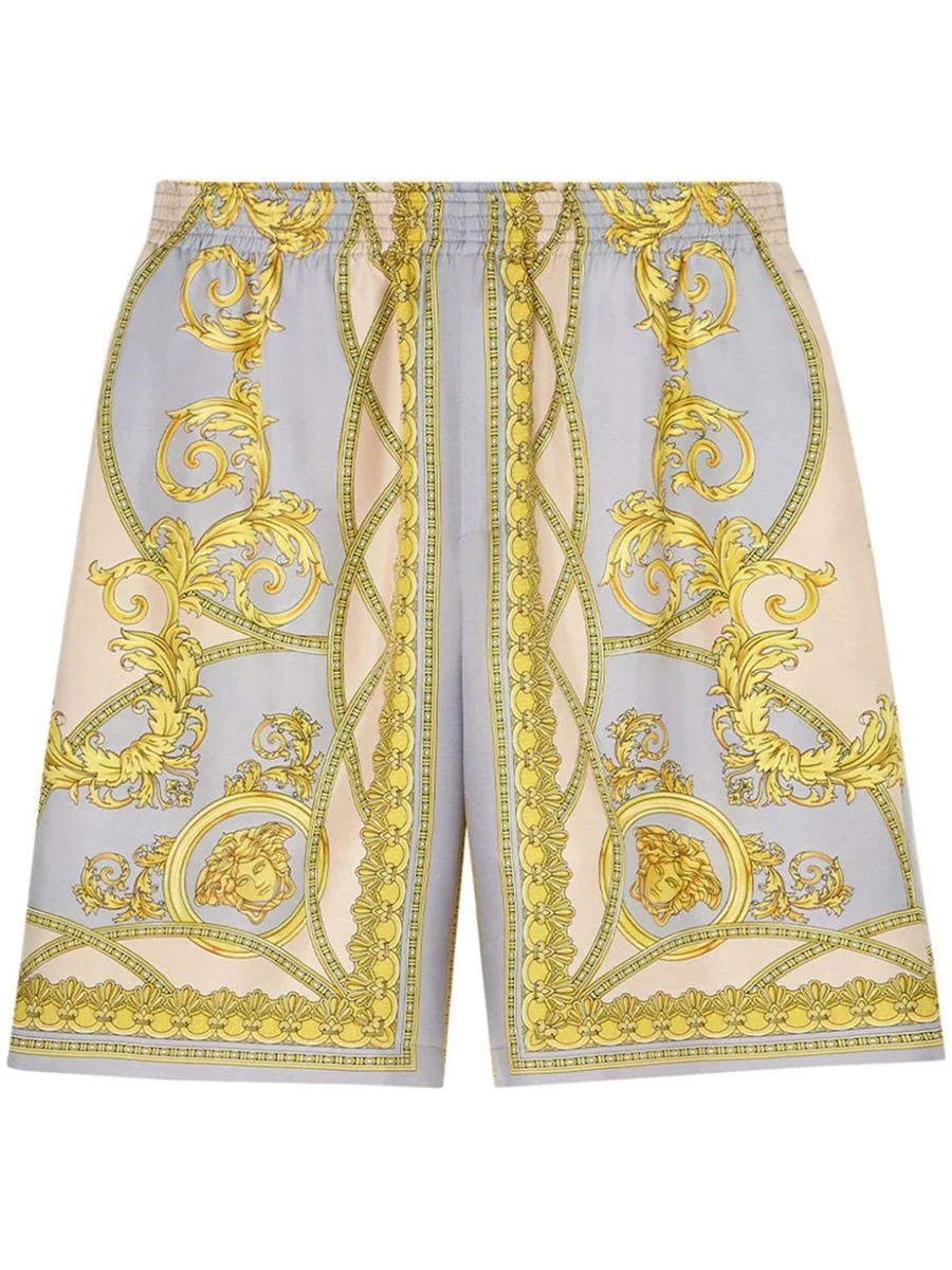 multicolour silk La Coupe Des Dieux print elasticated waistband straight leg knee-length This piece fits true to size. We recommend you get your regular size Model is 1,84m / 6ft 1in wearing size 48 (IT) Gender: Men Material: SILK 100% Color: Gold Made in: IT Product ID: 10024761A113915E350 *Import tax/duty will be calculated at checkout (If applicable)