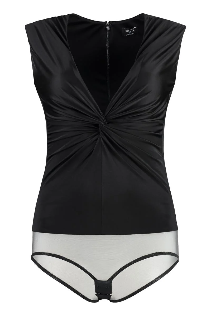 Sleeveless bodysuit Decorative front knot 16% Elastane, 84% Polyamide, 100% Viscose Gender: Women Material: VISCOSE Color: BLACK Made in: IT Product ID: 10112431A00572_1B000 *Import tax/duty will be calculated at checkout (If applicable)