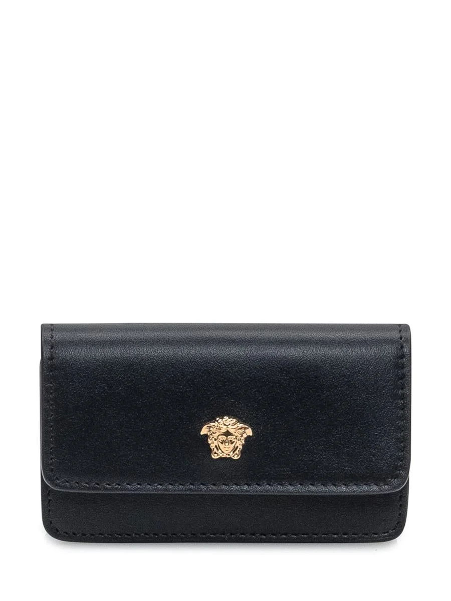 Black leather keychain with iconic golden Medusa logo. Compact and refined design, perfect for storing keys with elegance and a touch of luxury typical of the Versace maison. Width: 11.5Height: 6Depth: 3.5 Gender: Men Material: 100% LEATHER Color: Black Made in: Italy Product ID: 10200791A14675 1B00V *Import tax/duty will be calculated at checkout (If applicable)
