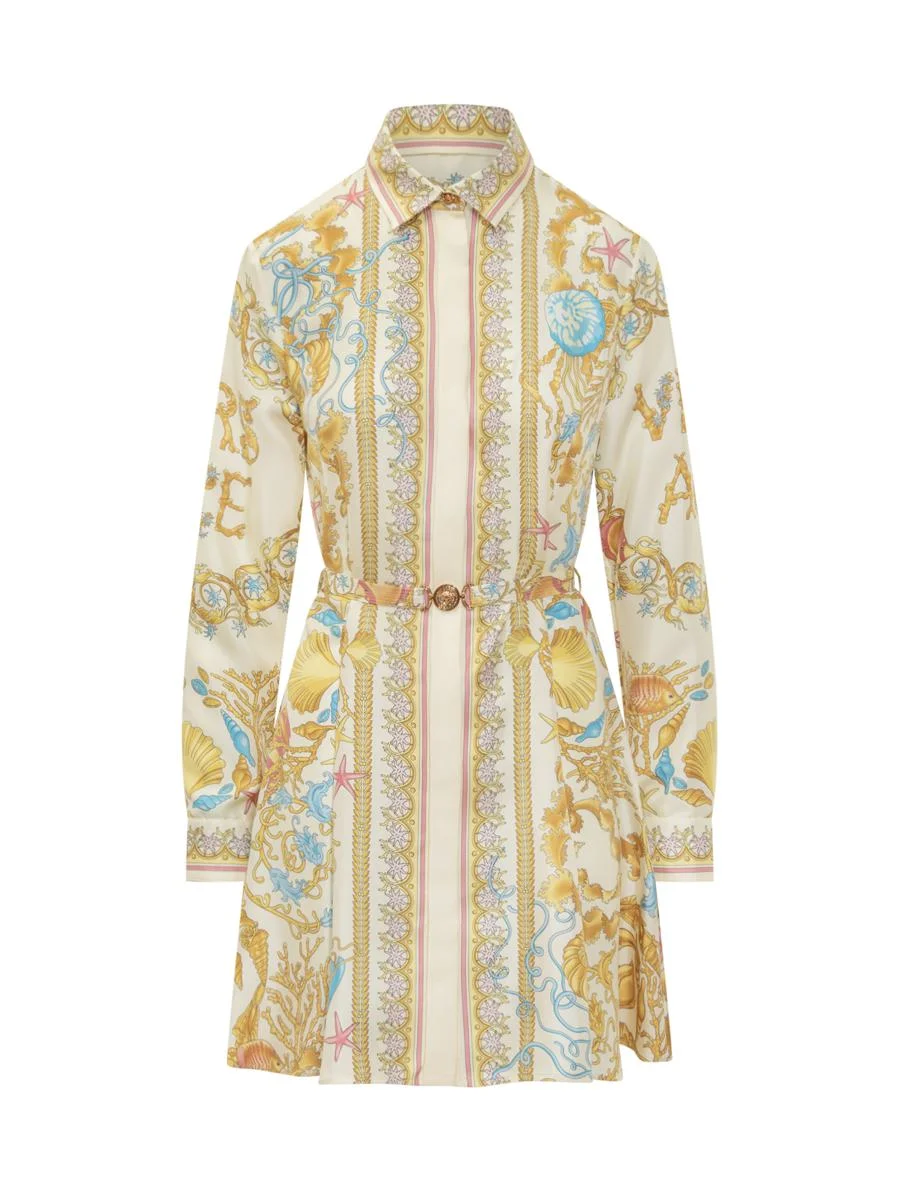 Versace navy baroque printed satin mini shirt dress with belt and long sleeves. Gender: Women Material: 100% SILK Color: YELLOW Made in: Italy Product ID: 10189331A14746 5K640 *Import tax/duty will be calculated at checkout (If applicable)
