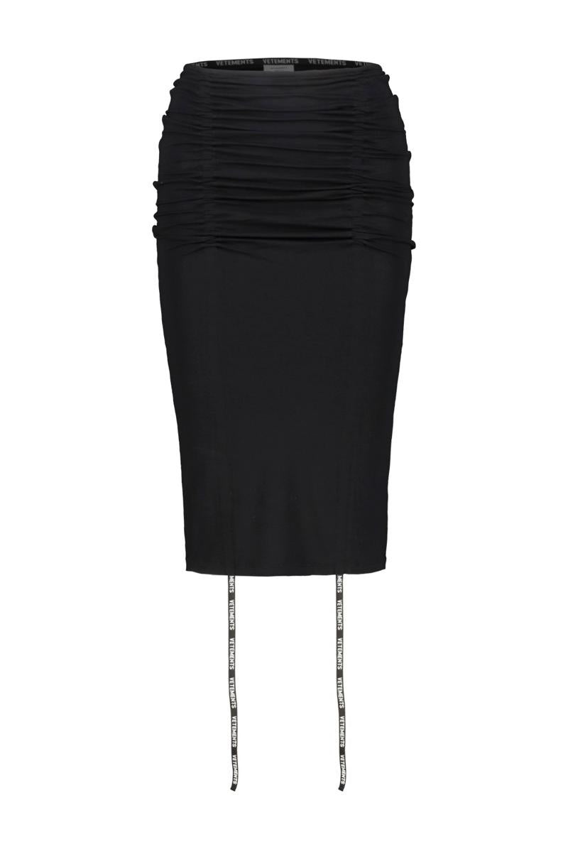 Vetements jersey skirt with logo drawstring details, logoed elastic waistband Gender: Women Material: VISCOSE | 94% VISCOSE 6% ELASTHANE Color: BLACK Made in: PT Product ID: UE64SK950B *Import tax/duty will be calculated at checkout (If applicable)