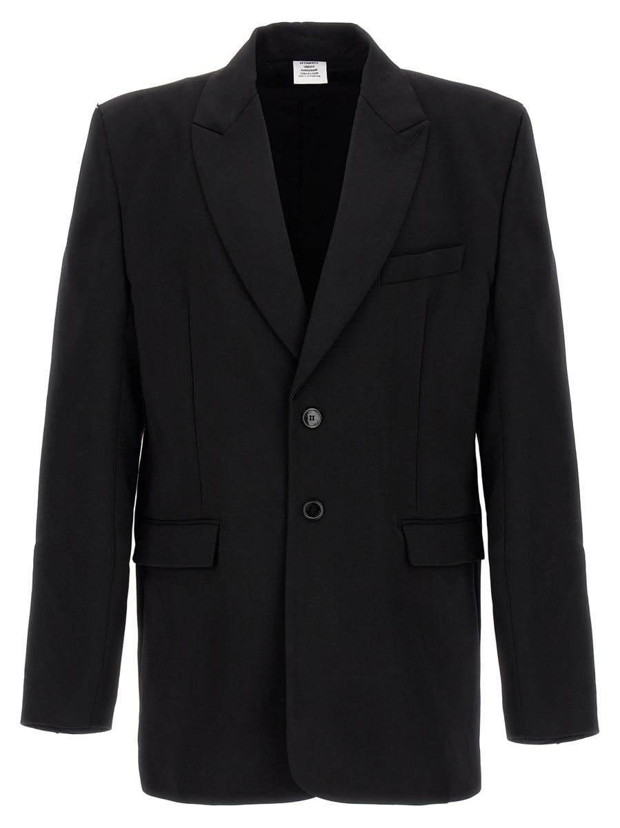 'Logo Embroidered' single-breasted wool blend blazer with button closure, back logo embroidery, padded shoulders, long sleeves, back split Gender: Men Material: 93% VIRGIN WOOL 4% ELASTANE 3% POLYAMIDE Color: Black Made in: IT Product ID: UA65JA710BBLACK *Import tax/duty will be calculated at checkout (If applicable)