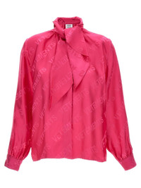 'Monogram' viscose blouse with all-over jacquard logo, covered buttons, and neck bow Gender: Women Material: 100% VISCOSE Color: FUCHSIA Made in: Imported Product ID: WE54SH100HHOTPINK *Import tax/duty will be calculated at checkout (If applicable)