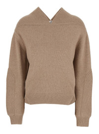 Sweater Beige V neck on front and rear Long sleeves Logo patch on the rear Ribbed trims Straight hem Knit Cashmere and wool Relaxed fit Gender: Women Material: 70% CASHMERE 30% MERINO WOOL Color: Beige Made in: Imported Product ID: 1325KJU006421A2679 *Import tax/duty will be calculated at checkout (If applicable)