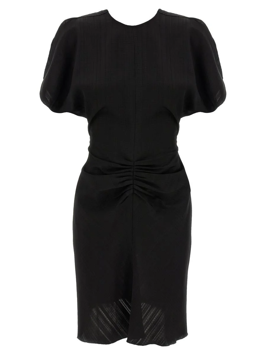 'Gathered Waist Mini' dress in new viscose, tight at the waist with crinkled detail, front round neckline, V-neck and back zip closure, short sleeves with slits, contrast stitching Gender: Women Material: 100% VISCOSE Color: Black Made in: Portugal Product ID: 1424WDR006087ABLACK *Import tax/duty will be calculated at checkout (If applicable)