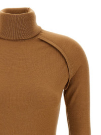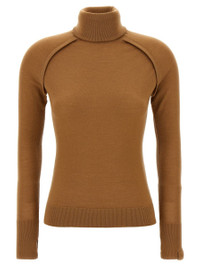 Wool blend sweater, high neck, 'piping' detail, long sleeves with logo detail on the cuffs Gender: Women Material: 100% MERINO WOOL Color: Beige Made in: Imported Product ID: 1325KTP006541ACAMEL *Import tax/duty will be calculated at checkout (If applicable)