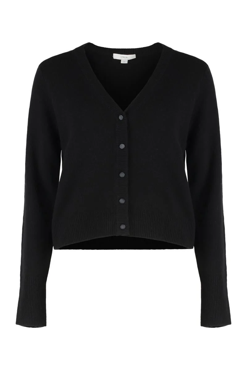 Wool and cashmere cardigan Ribbed knit edges 90% Wool, 10% Cashmere Gender: Women Material: WOOL Color: Black Made in: Imported Product ID: V122979634_001BLK *Import tax/duty will be calculated at checkout (If applicable)
