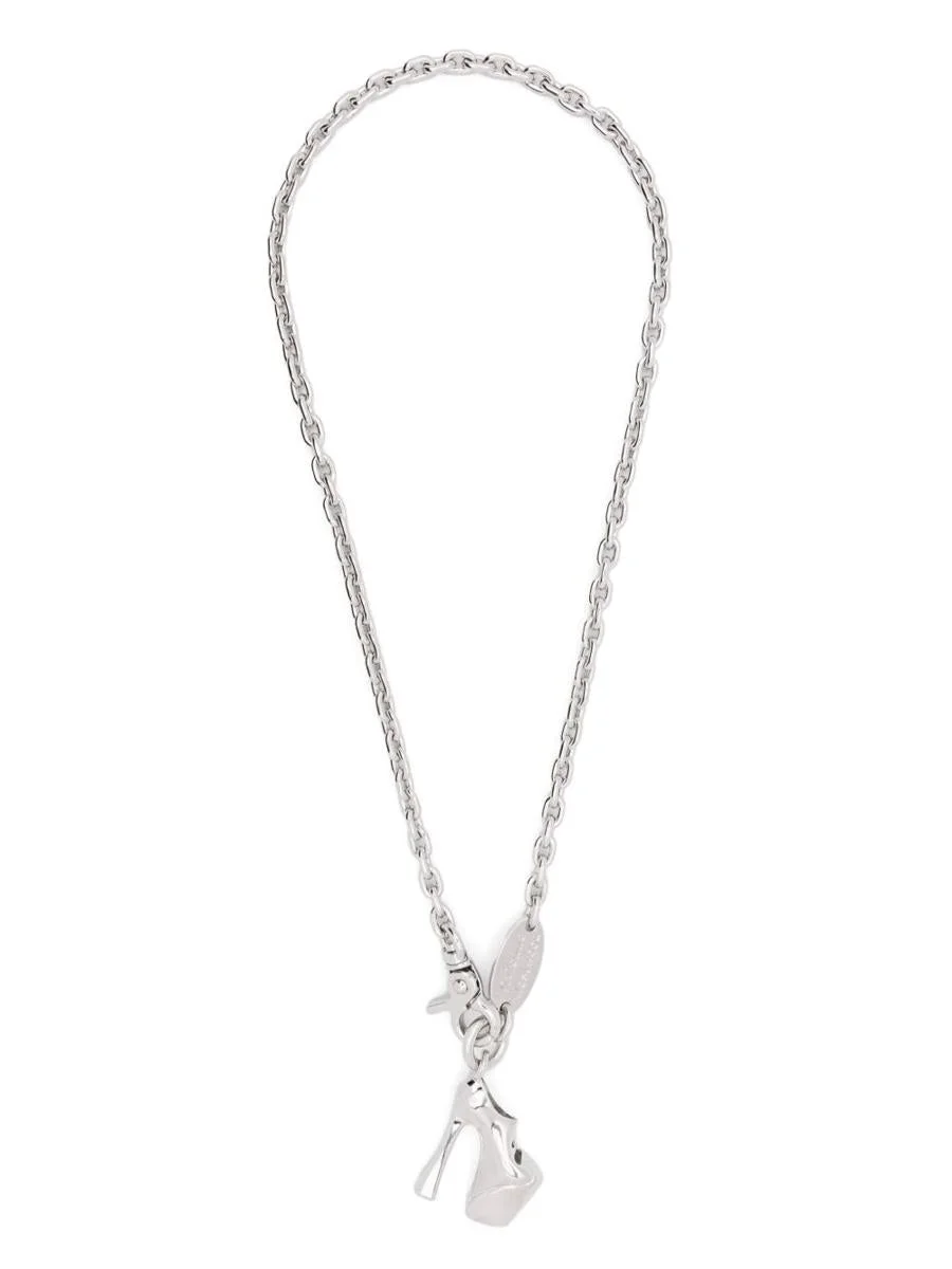 silver-tone spring-ring fastening statement pendant engraved logo cable-link chain Gender: Women Material: BRASS 100% Color: PLATINUM Made in: Imported Product ID: 6301013N P019 *Import tax/duty will be calculated at checkout (If applicable)