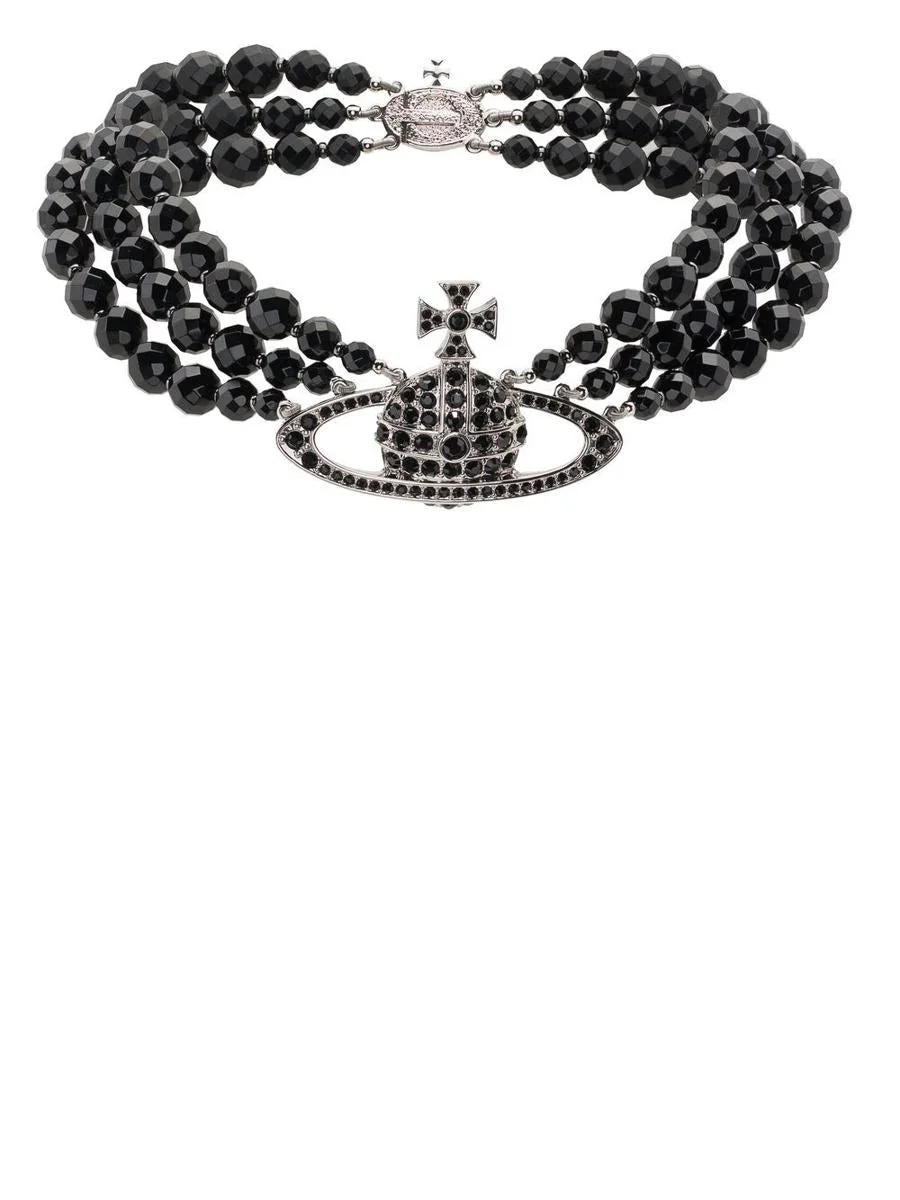 black silver-tone signature Orb plaque detail crystal embellishment bead chain layered design engraved logo clasp fastening Gender: Women Material: BRASS 100% Color: PLATINUM/RUTHENIUM/BLACK Made in: TH Product ID: 6303002E P178 *Import tax/duty will be calculated at checkout (If applicable)