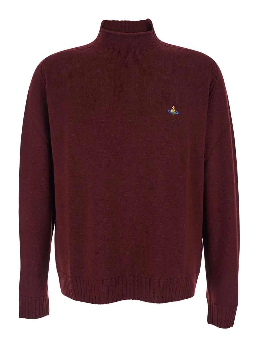 Vivienne Westwood Bordeaux Turtleneck Sweater With Orb Logo Embroidered On The Front In Wool Blend M