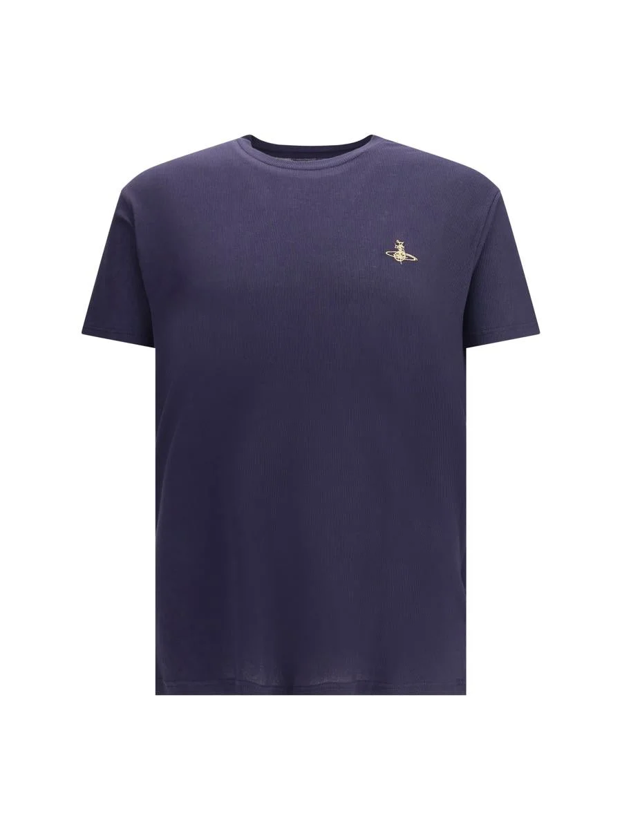 VIVIENNE WESTWOOD'S RIBBED T-SHIRT IS AN ESSENTIAL GARMENT WITH A BOLD AND RECOGNIZABLE STYLE. MADE OF RIBBED FABRIC THAT ENHANCES THE FIT, IT IS EMBELLISHED WITH THE ICONIC ORBIT LOGO SEWN ON THE FRONT, A DISTINCTIVE DETAIL OF THE FASHION HOUSE. A PERFECT BLEND OF SIMPLICITY AND IDENTITY. STANDARD Gender: Men Material: COTTON Color: BLUE Made in: Imported Product ID: 3G010013J009U_K420 *Import tax/duty will be calculated at checkout (If applicable)
