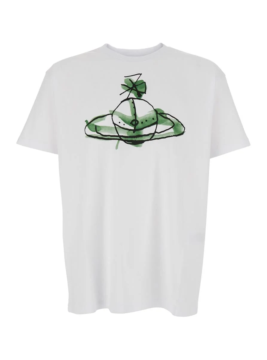 Vivienne Westwood White Crew Neck T-Shirt With Orb Print On The Front In Cotton Man