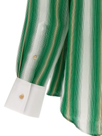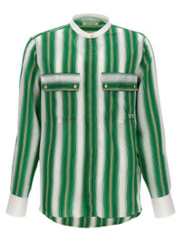 'Cadence' viscose silk blend shirt with striped pattern, contrast cuffs, mandarin collar, covered button closure, chest pockets Gender: Men Material: 84% VISCOSE, 16% SILK Color: MULTICOLOR Made in: Imported Product ID: MS24SH02VI030070 *Import tax/duty will be calculated at checkout (If applicable)