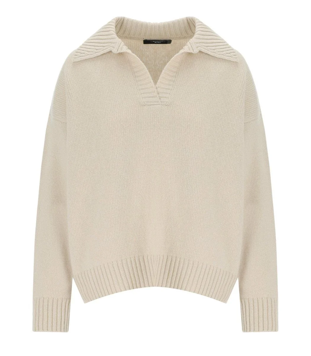 Agre jumper by Max Mara Weekend made of wool in beige tones. Featuring a polo collar and an open V-neckline at the front. It has ribbed collar, cuffs, and hem. Relaxed fit. The model is 178 cm tall and is wearing size M. Composition: 100% virgin wool. Gender: Women Material: WOOL Color: Beige Made in: Italy Product ID: 2525366212600-002 *Import tax/duty will be calculated at checkout (If applicable)