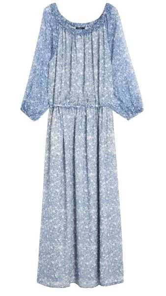 light blue floral pattern off-shoulder neckline long sleeves elasticated waist Gender: Women Material: 100 SILK Color: MULTICOLOR Made in: Italy Product ID: 2515221162600ENZA002 *Import tax/duty will be calculated at checkout (If applicable)