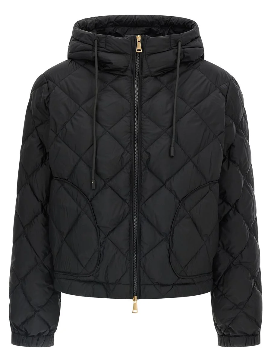 'Eris' jacket in diamond-quilted technical waterproof fabric with goose down padding, adjustable hood, top zip closure, pockets, long sleeves with elastic cuffs, drawstring on the hem Gender: Women Material: 100% POLYESTER Color: Black Made in: Imported Product ID: 2525486032600005 *Import tax/duty will be calculated at checkout (If applicable)
