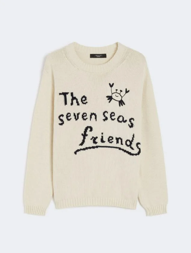 Regular fit sweater, with collection motif inlaid on the front. Gender: Women Material: 90% COTTON, 10% POLYESTER Color: Beige Made in: Italy Product ID: 2525366171600001 AVORIO *Import tax/duty will be calculated at checkout (If applicable)