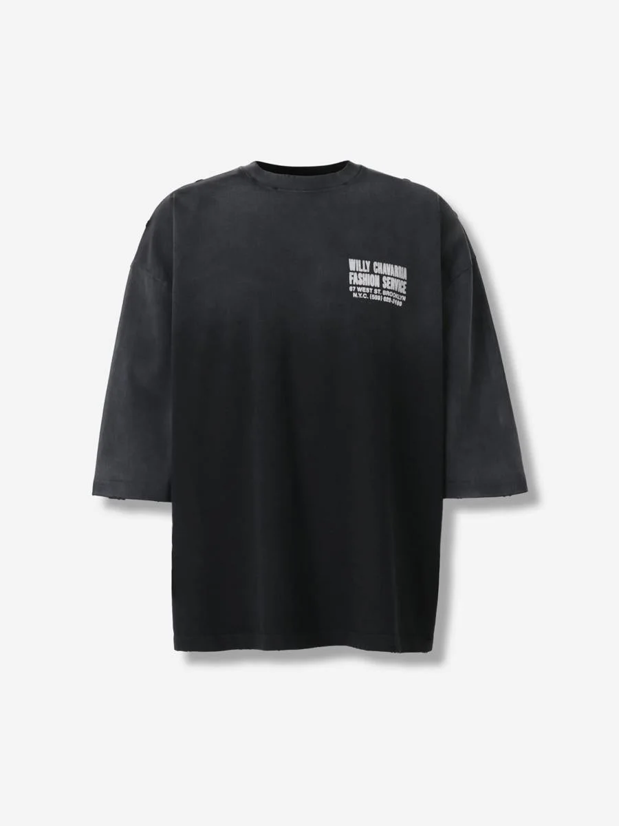 Oversize Printed T-shirtT-shirt By Willy Chavarria• Ribbed finishes at the neck• Oversize fit• Printed on front and back• Worn finish• Made in cotton jersey• 3/4 Sleeve T-shirt• Round neckComposition: 100% cottonUnited States Gender: Men Material: 100% COTTON Color: Black Made in: Imported Product ID: WCJSY0110_001BLACK *Import tax/duty will be calculated at checkout (If applicable)