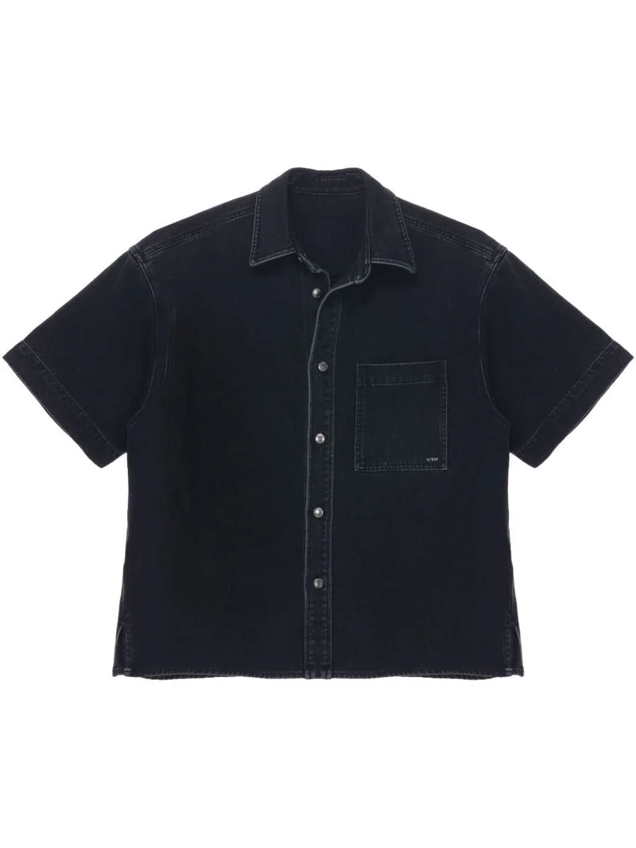 black front button fastening chest patch pocket short sleeves straight hem Gender: Men Material: 100%COTTON Color: Black Made in: KR Product ID: W251SH29875B *Import tax/duty will be calculated at checkout (If applicable)
