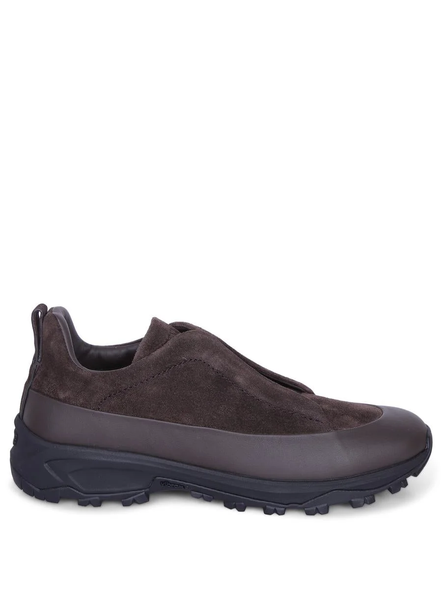 High-quality suede leather. Vibram rubber sole for maximum grip. Slip-on design with elastic inserts. These dark brown suede leather sneakers by Zegna feature a modern slip-on design with elastic inserts for comfort and convenience. The robust Vibram sole adds durability and excellent support with every step. Gender: Men Material: 100% LEATHER Color: BROWN Made in: Imported Product ID: LHNEL S7008Z TDM *Import tax/duty will be calculated at checkout (If applicable)