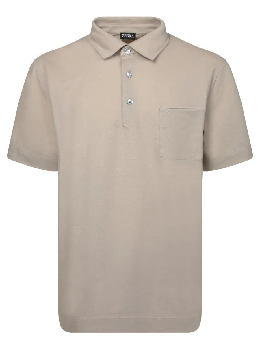 Short sleeve polo in piquet fabric. Classic collar with three-button placket. Patch pocket on chest. This Zegna polo encapsulates understated elegance with its neutral beige hue and refined details such as the leather trim on the collar and chest pocket, lending a touch of casual class. Gender: Men Material: 100% COTTON Color: Beige Made in: Imported Product ID: UF392A9 F752 N02 *Import tax/duty will be calculated at checkout (If applicable)