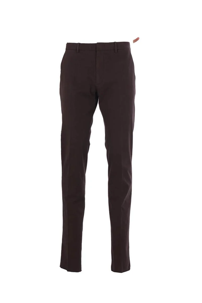 Zegna trousers crafted from dark brown stretch cotton gabardine. Featuring hook, button, and zip closure, belt loops, multiple pockets, and a central crease. Unlined interior. Gender: Men Material: TISSUE : COTTON 97% LYCRA 3% | LINING : COTTON 100% Color: DARK BROWN UNITED Made in: Romania Product ID: TR00UGI17A28M9 *Import tax/duty will be calculated at checkout (If applicable)