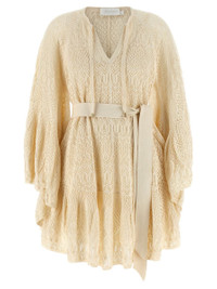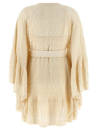 'Coco Pointelle Lace' lace knit mini dress, V-neck with drawstring, long bat sleeves with ruffle on the cuff, removable belt, removable cotton petticoat Gender: Women Material: 58% PAPER YARN, 42% POLYESTER Color: Beige Made in: Imported Product ID: 3045DSS254CRM *Import tax/duty will be calculated at checkout (If applicable)
