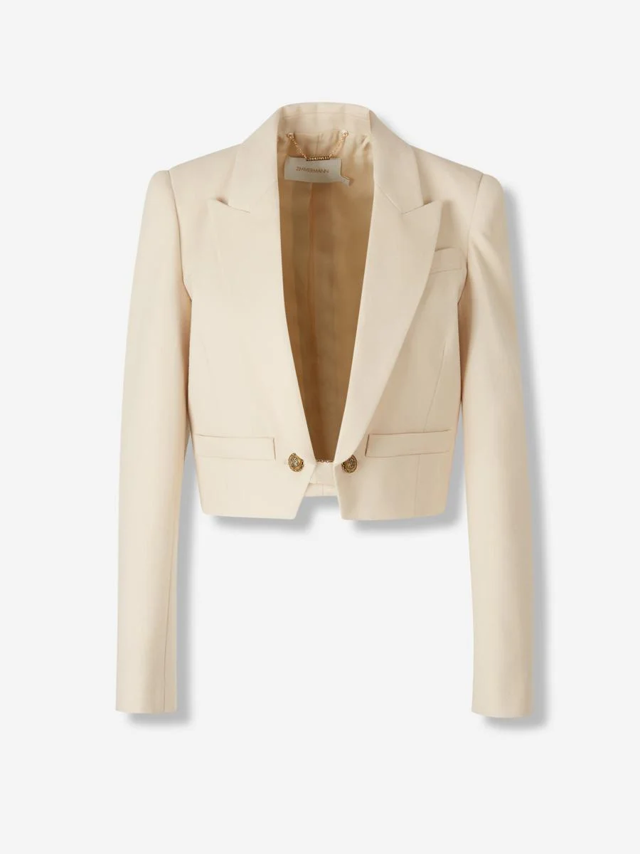 Cropped Wool BlazerCropped Blazer By Zimmermann• With lapel• Regular fit• Side pockets • Buttoned cuffs• Made from wool fabric• Cropped style• Non-functional buttons at the frontComposition: 98% wool, 2% elastaneMade in: Australia Gender: Women Material: 98% WOOL, 2% ELASTANE Color: Beige Made in: Imported Product ID: 4830JF251_CRMCream *Import tax/duty will be calculated at checkout (If applicable)