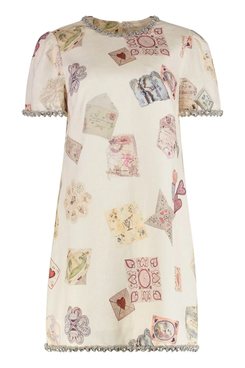 Hypnotic tunic jewelry dress I live in a tunic dress with rhinestones on the neckline, cuffs, and hem, with soft tulle layered on the shoulder for a voluminous yet delicate effect and an invisible zipper at the center on the back. The Love Letter print, with soft hues and vibrant details, gives it a touch of elegance and femininity. The comfortable fit makes it ideal for various occasions, from day to night. Zimmermann size guide: 0P = 38P IT 0 = 40 IT 1 = 42 IT 2 = 44 IT 3 = 46 IT 4 = 48 IT 100% Linen Gender: Women Material: LINEN Color: MULTICOLOR Made in: Imported Product ID: 5240DF251_CLLT *Import tax/duty will be calculated at checkout (If applicable)