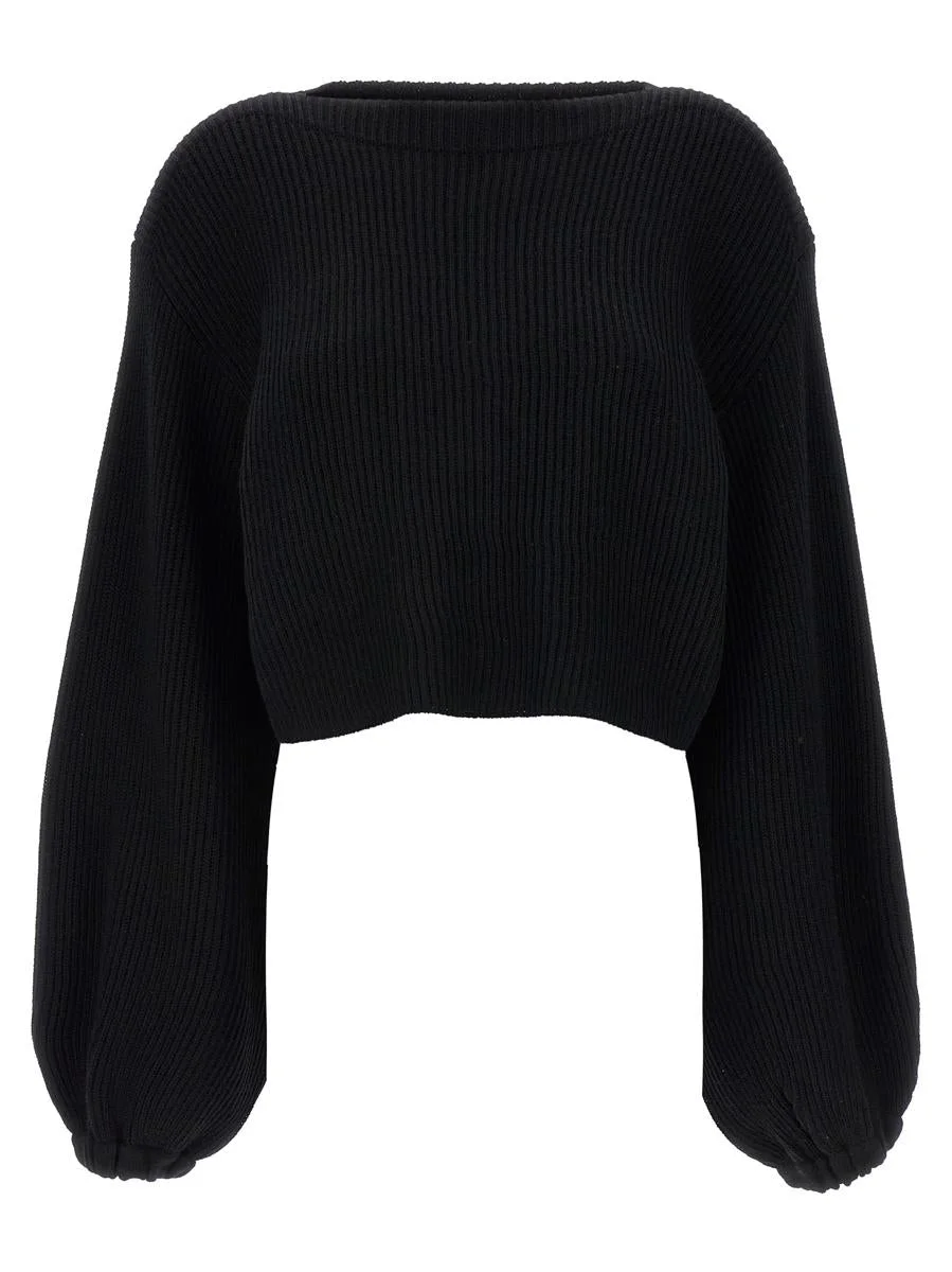 Illustration Billow' wool sweater with round neckline, long and wide sleeves and elastic cuffs Gender: Women Material: 100% MERINO WOOL Color: Black Made in: IMPORTED Product ID: 0153TF241BLK *Import tax/duty will be calculated at checkout (If applicable)