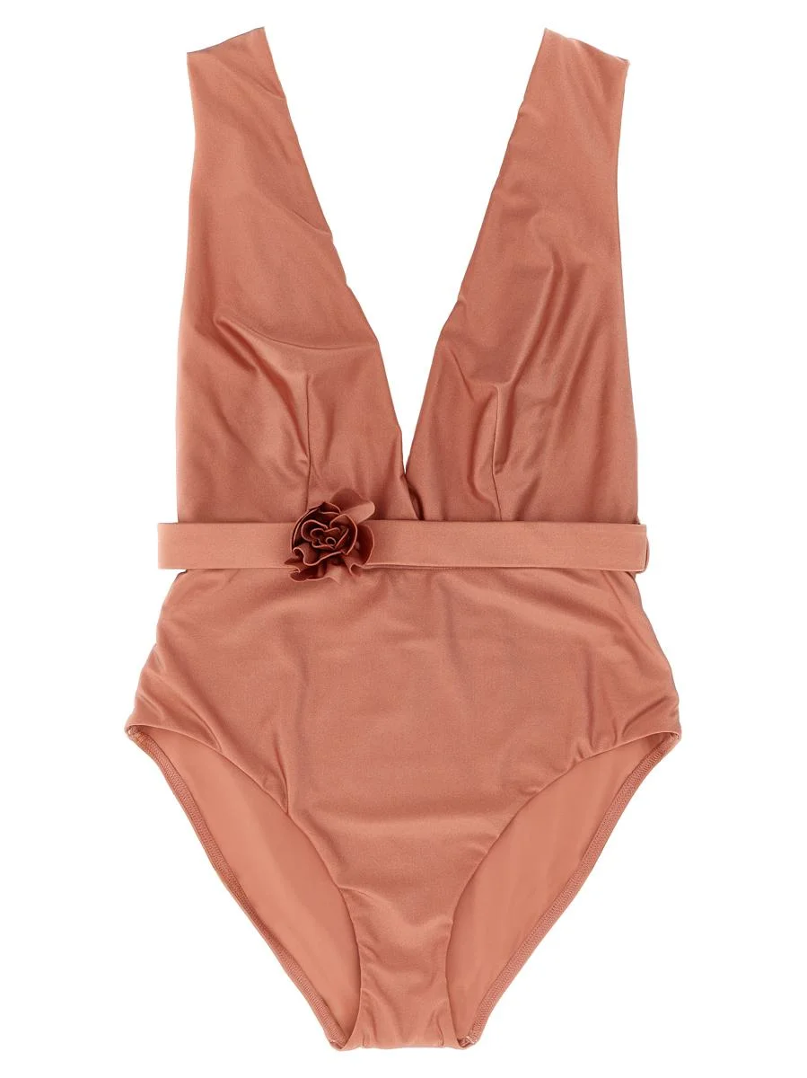 'Lucky Plunge Flower' one-piece swimsuit with deep neckline on the front and back, removable flower belt at the waist Gender: Women Material: 80% POLYAMIDE, 20% ELASTANE Color: PINK Made in: Imported Product ID: 4371WSS252RSE *Import tax/duty will be calculated at checkout (If applicable)