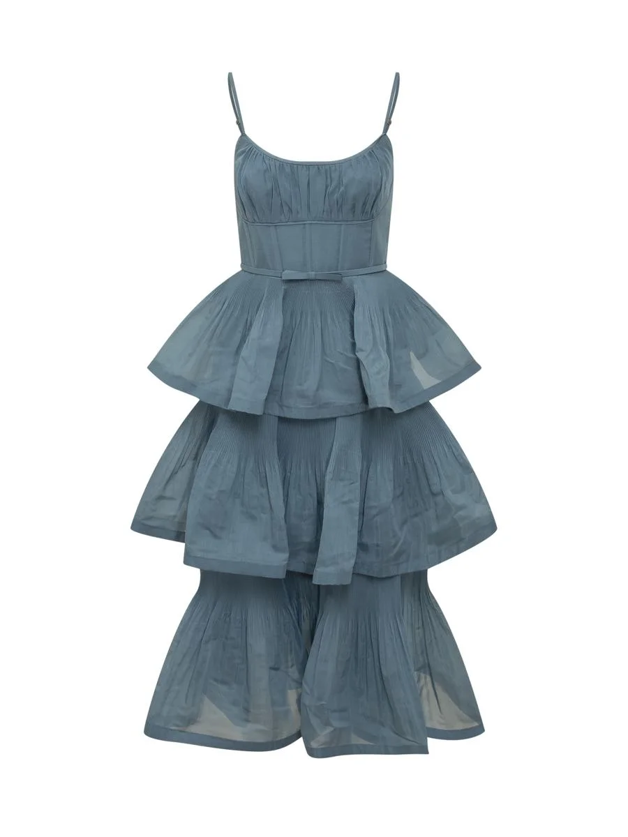Zimmermann Midi Dress With Ruffles And Thin Straps