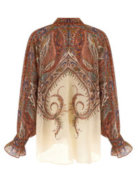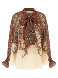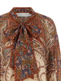 'Rhiannon Tie Neck' blouse in ramie fabric with Cream Paisley print, lavalliere collar, front button closure, cape style, long bat sleeves with elasticated cuffs and ruffles Gender: Women Material: 100% RAMIE Color: MULTICOLOR Made in: Imported Product ID: 3236TSS251CMP *Import tax/duty will be calculated at checkout (If applicable)