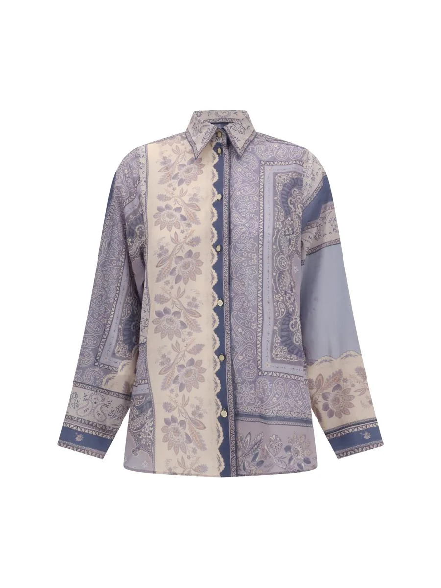 THE LUCKY SHIRT BY ZIMMERMANN IS A SOPHISTICATED AND FEMININE STYLE PIECE, FEATURING A CLASSIC COLLAR AND A PRACTICAL FRONT BUTTON CLOSURE. CRAFTED WITH ATTENTION TO DETAIL, IT STANDS OUT FOR ITS REFINED ALL-OVER PAISLEY AND FLORAL PATTERN, WHICH LENDS A BOHO-CHIC AND ROMANTIC TOUCH. PERFECT TO PAIR WITH TAILORED PANTS OR FLOWING SKIRTS, THIS SHIRT COMBINES ELEGANCE AND ORIGINALITY IN AN ICONIC DESIGN FROM THE AUSTRALIAN BRAND NUMERIC Gender: Women Material: COTTON Color: Purple Made in: Imported Product ID: 4322TSS252_BLUBA *Import tax/duty will be calculated at checkout (If applicable)
