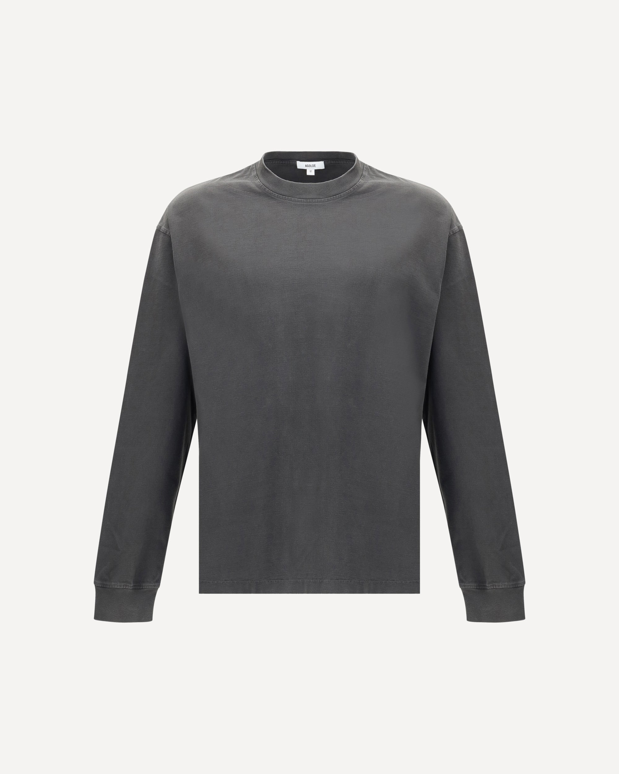 Agolde's long sleeve T-Shirt is an essential piece with a clean, versatile design. Made of soft jersey, it features a ribbed crew neck and elasticized cuffs that discreetly define the silhouette, perfect for a casual, refined look. DETAILS - Sku: A10381521_AVE - Season: AW25 - Fit: Regular - Composition: GENERAL 100% Cotton - MADE IN U.S.A.