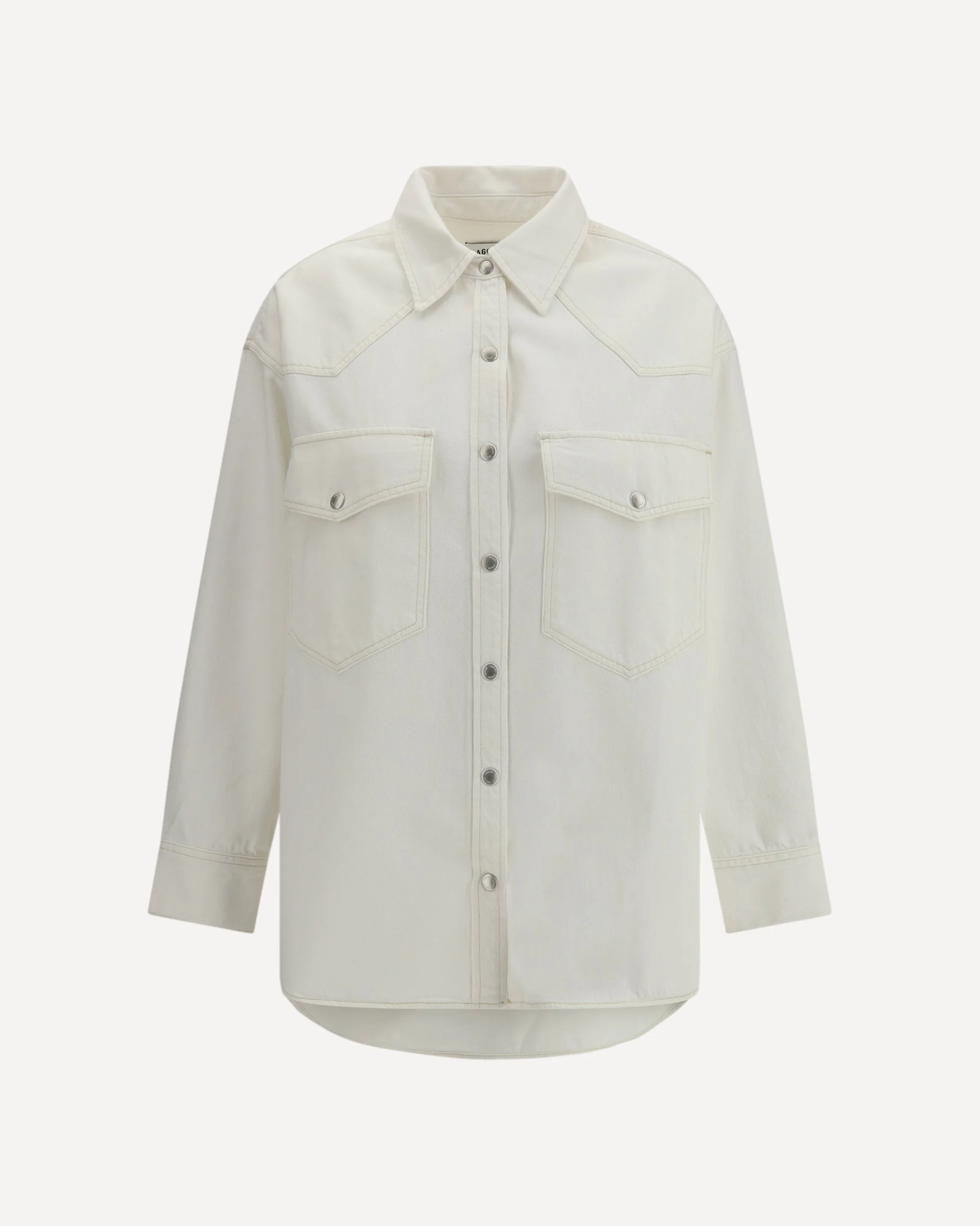The Lotta Shirt in Grade by Agolde, a structured denim shirt with a subtle nod to classic Western styles. The pointed yoke, snap-button closure, and flap pockets define its character, while the medium indigo wash enhances the rigid regenerative-cotton denim. Wear it open over a tee for a casual feel or buttoned up for a clean, polished take on classic denim. DETAILS - Sku: A73571500_MLSKE - Season: SS26 - Fit: Oversize - Composition: GENERAL 75% Cotton 25% Lyocell - MADE IN TURKEY