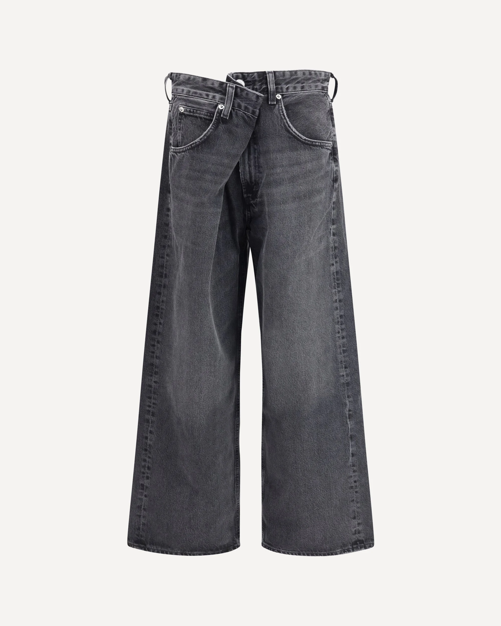 Vana wide leg Jeans by Agolde are distinguished by a wide, modern silhouette enhanced by a double front button, hook and eye and double zipper closure. The five-pocket design and waist loops complete a model with a strong character, perfect for contemporary and sophisticated looks. DETAILS - Sku: A2411817_ARNE - Season: SS26 - Fit: Regular - Composition: GENERAL 100% Cotton - MADE IN TURKEY