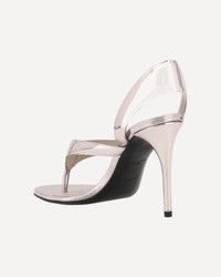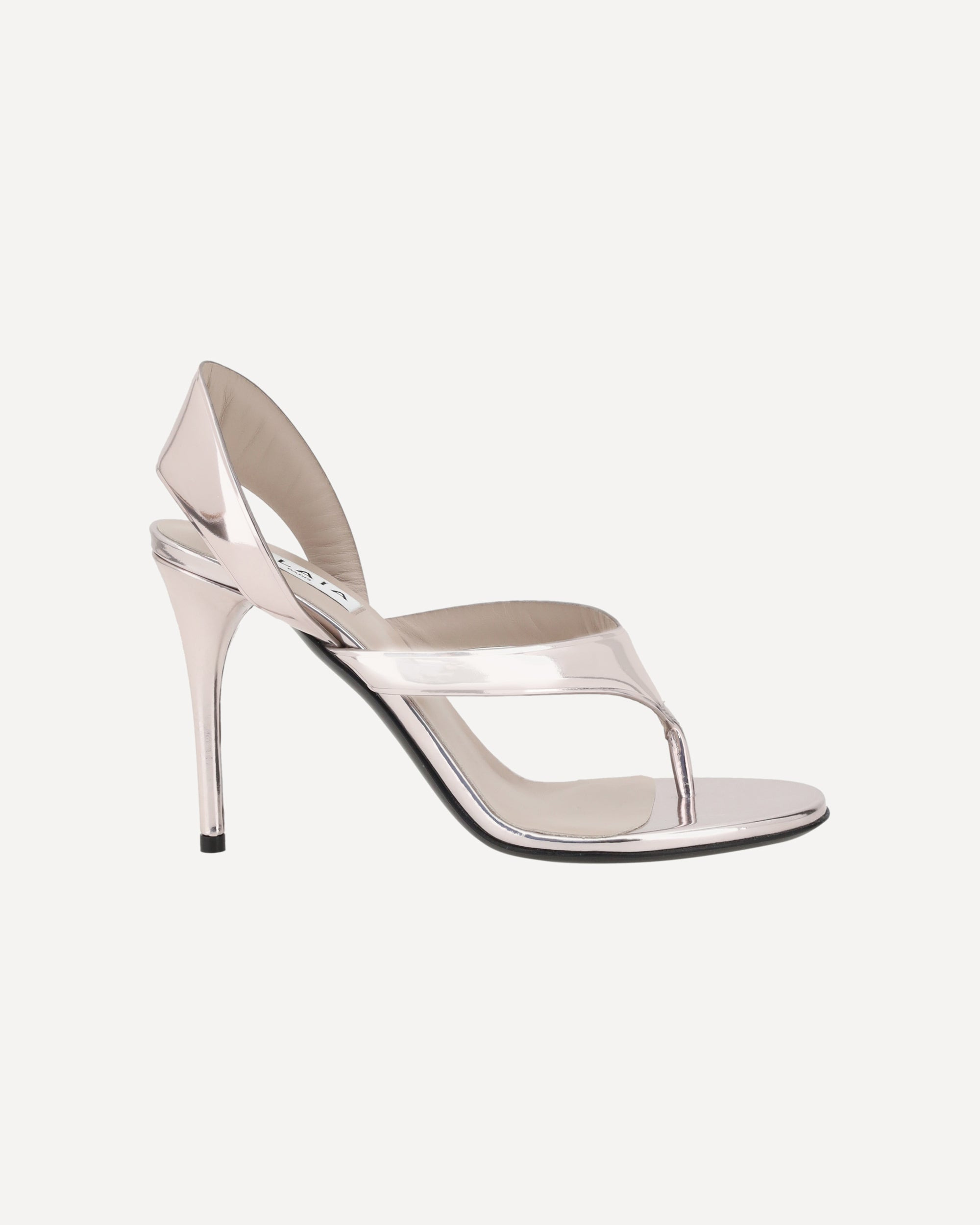 Alaia's leather Sandals are a piece of high elegance, featuring a flip-flop style that offers a refined and sophisticated look. The leather stiletto heel lends a touch of femininity and slims the silhouette, while the branded insole adds a distinctive and luxurious detail. DETAILS sku AA3S122CK298_428 composition: CALF LEATHER BOS TAURUS 100% color group: SILVER gender: WOMAN season: SS25 size chart: SHOES IT category name: SANDALS dimensions: 9 cm