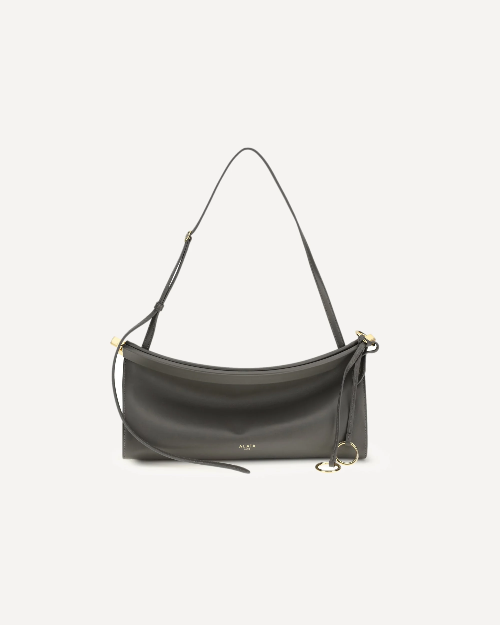 The Le Click West medium leather Shoulder Bag from Alaia is a refined and elegant accessory, perfect for adding a touch of class to your look. The adjustable shoulder strap allows you to customize the length for an optimal fit. The decorative laces with metal rings on the sides add a distinctive and modern detail, while the iconic monogram press stud on the front reinforces the brand's identity. The leather-covered top zip closure ensures safety and protection, completing the bag's elegant design. A must-have for those seeking sophisticated style with a touch of character. DETAILS - Sku: AA1S01430CA332_284 - Season: SS26 - Dimension: 30x14x9 - Composition: GENERAL 100% Calf Leather Bos Taurus - MADE IN ITALY