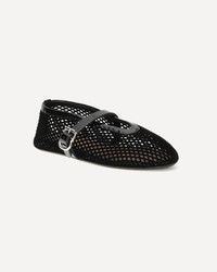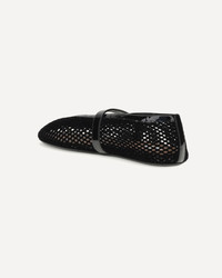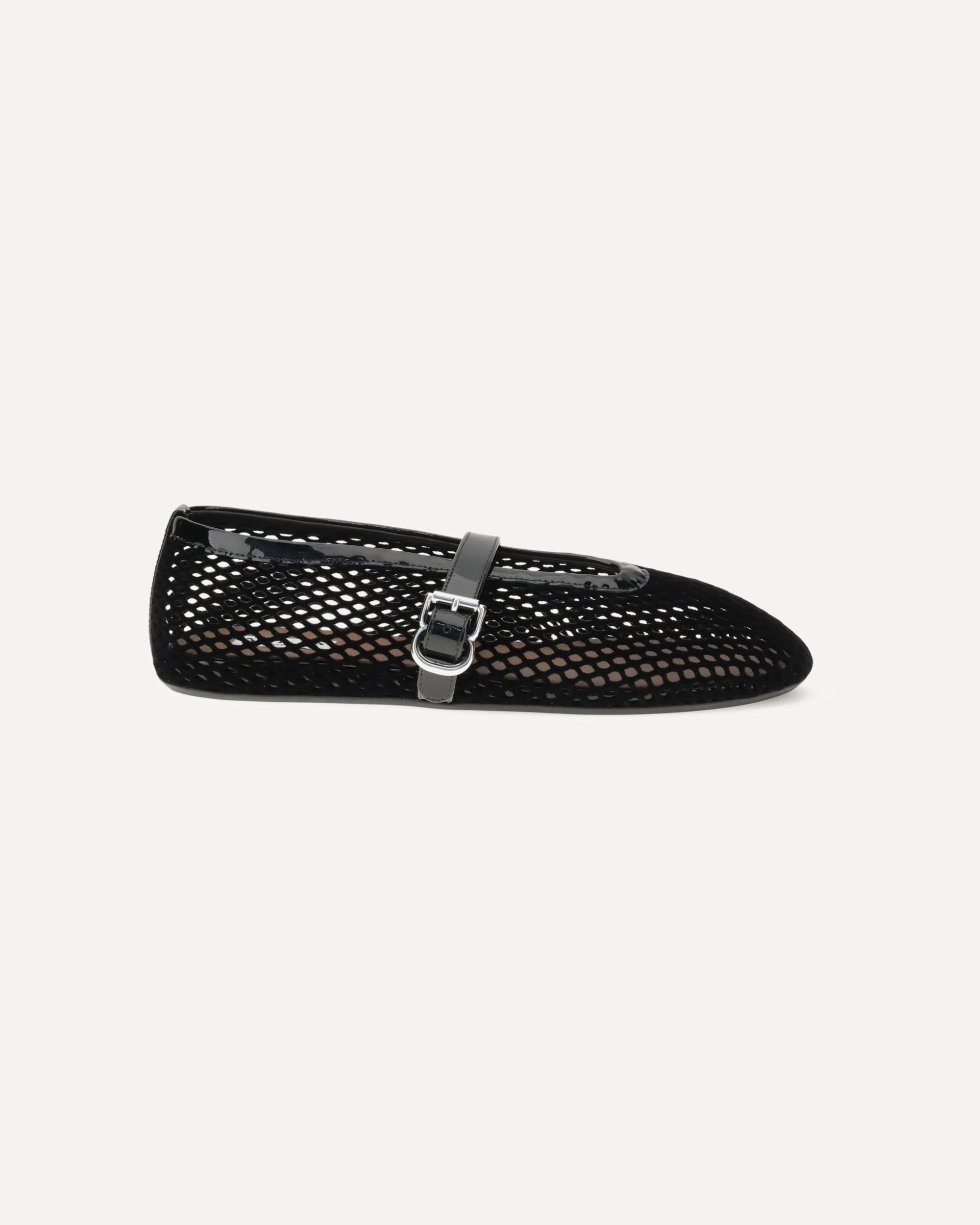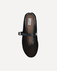 Mesh Ballerinas by Alaia elegantly reinterpret traditional Japanese footwear through a contemporary and sophisticated vision. Made of mesh fabric and patent leather, they feature a rounded toe and a buckled strap at the top, which adds a graphic and structured touch. The rubber sole ensures comfort and practicality, while the lightweight and refined design makes them perfect for stylishly completing both minimalist and more sophisticated looks. DETAILS - Sku: AA3A029A015_999 - Season: AW25 - Composition: GENERAL 100% Lamb Ovis Aries Aries - MADE IN ITALY