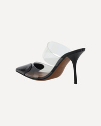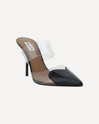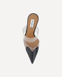 Decollete from Alaia, almond toe, wide transparent band applied to the back of the foot, patent leather design, leather stiletto heel, logoed insole. DETAILS sku AA3M053CK150_999 composition: CALF LEATHER BOS TAURUS 100% CALF LEATHER BOS TAURUS 50% POLYAMIDE 50% color group: BLACK gender: WOMAN season: AW24 size chart: SHOES IT category name: PUMPS dimensions: 9 cm