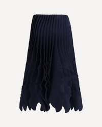 The Tweed Knit Ruffle Skirt by Alaia is a feminine and sophisticated piece. Crafted from tweed-effect knit, it features a low-rise waist with an elastic waistband for comfort and fit. The mid-length cut and raised pleated ruffles add movement and refined elegance. DETAILS - Sku: AA9J2414K096B_541 - Season: AW25 - Fit: Regular - Composition: GENERAL 47% Silk 43% Wool 10% Polyamide