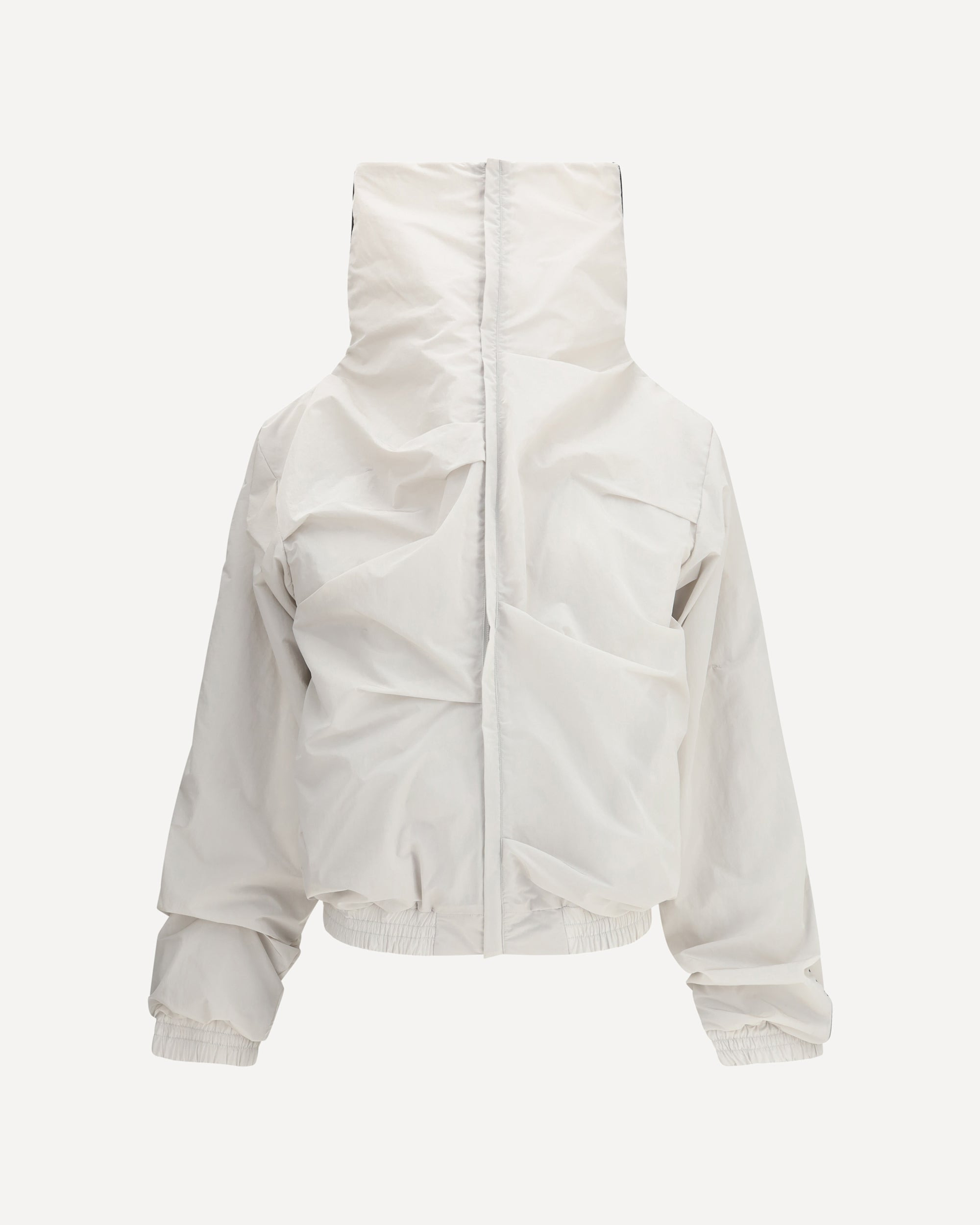 Alain Paul's High collar Jacket is a refined design that combines contemporary lines with striking tailoring details. The high collar lends character and structure, while the front zipper adds practicality and a modern touch. The real distinguishing element is the soft draping on the front and sleeves, which creates movement and volume, enhancing the silhouette with elegance. DETAILS - Sku: S4MTO06_GREY - Season: AW25 - Fit: Regular - Composition: GENERAL 100% Polyamide - MADE IN PORTUGAL