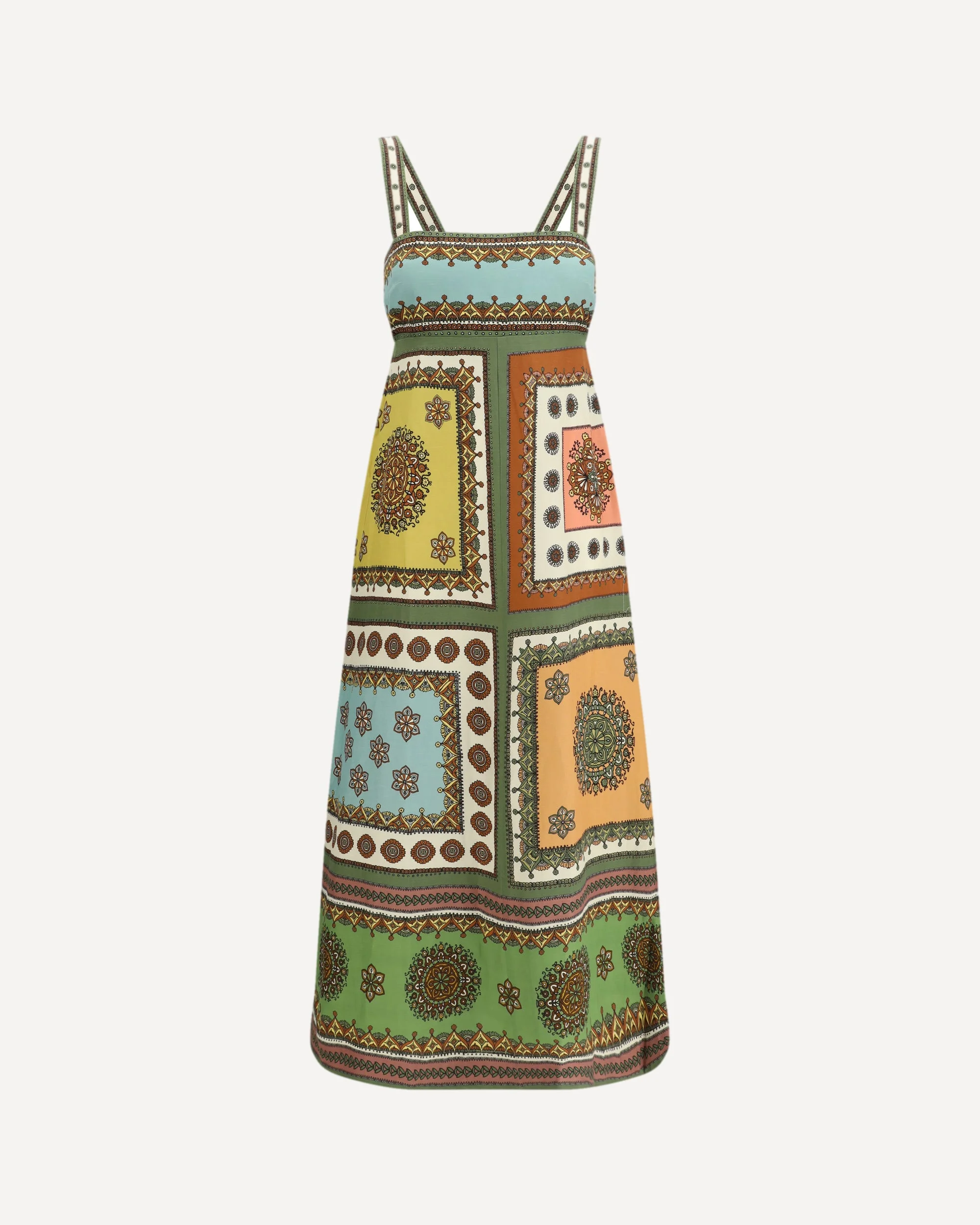 The Contina Day midi Dress by Alemais features a classic day dress silhouette with a refined, feminine appeal. Designed with a square neckline and a fitted bust to enhance the shape, it includes a shirred panel at the back bodice for added comfort and flexibility. The invisible side zip closure ensures a clean, streamlined finish. Partially lined, this dress is a versatile option for effortless everyday elegance. DETAILS - Sku: 6416D_MULTI - Season: SS26 - Fit: Regular - Composition: GENERAL 83% Viscose 17% Linen - MADE IN CHINA