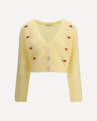 Alessandra Rich's mohair Cardigan with embroidery combines romance and sophistication in a retro-inspired design. Featuring a V-neckline, it features a button closure, ribbed hem and cuffs. Delicate perforated details and floral embroidery on the front complete the garment with a feminine and sophisticated touch. DETAILS - Sku: FABX4183_9088 - Season: AW25 - Fit: Regular - Composition: GENERAL 50% Mohair 32% Polyamide 18% Wool - MADE IN ITALY