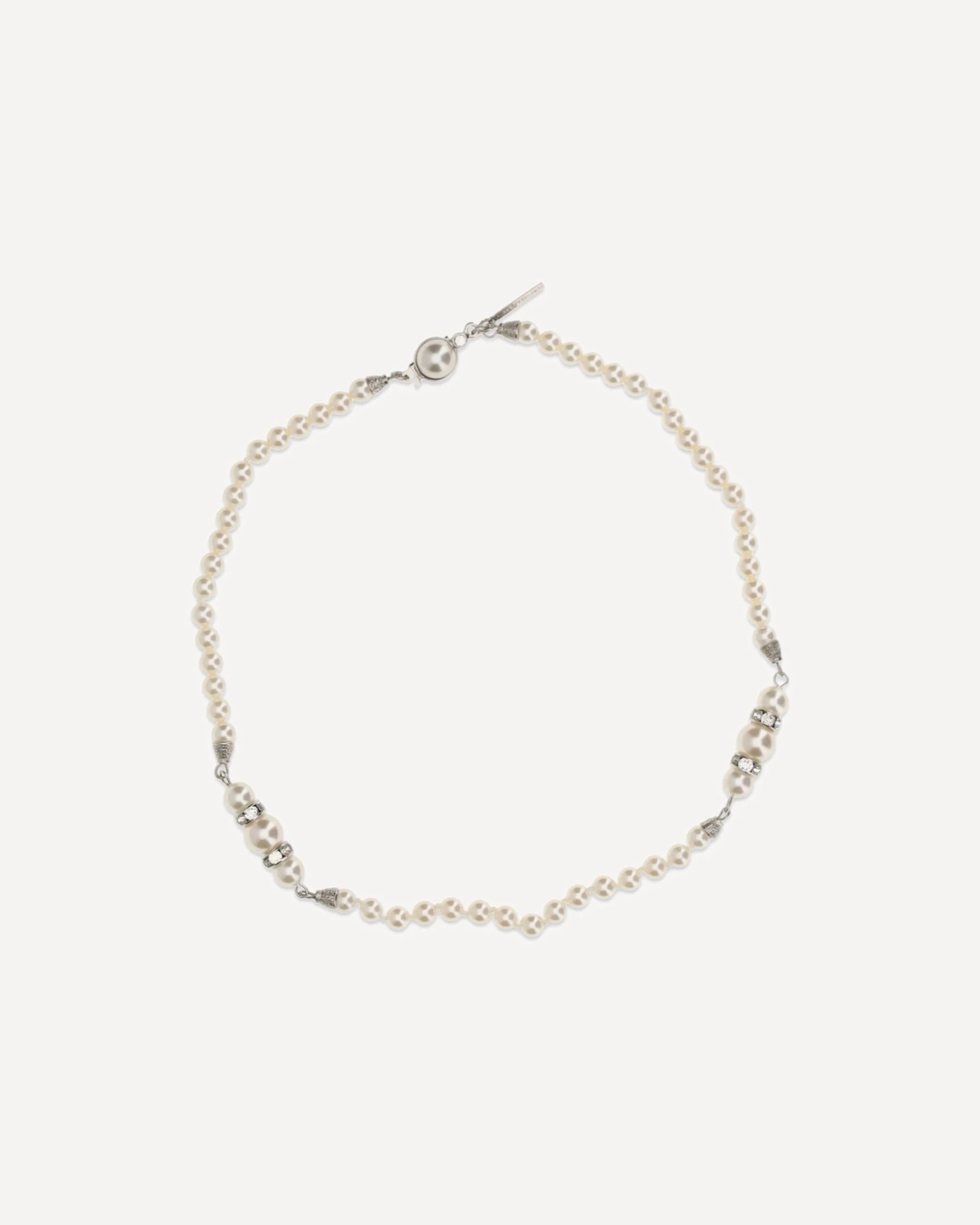 The pearl and crystal Necklace by Alessandra Rich combines classic elegance with contemporary sparkle. Pearls and crystals alternate harmoniously, creating a luminous and refined effect. The lobster clasp ensures security and practicality, making the necklace perfect for enhancing both formal outfits and more sophisticated everyday looks. DETAILS - Sku: FABA3329J0034_0001 - Season: SS26 - Composition: GENERAL 100% Metal Metallic Metallised - MADE IN ITALY