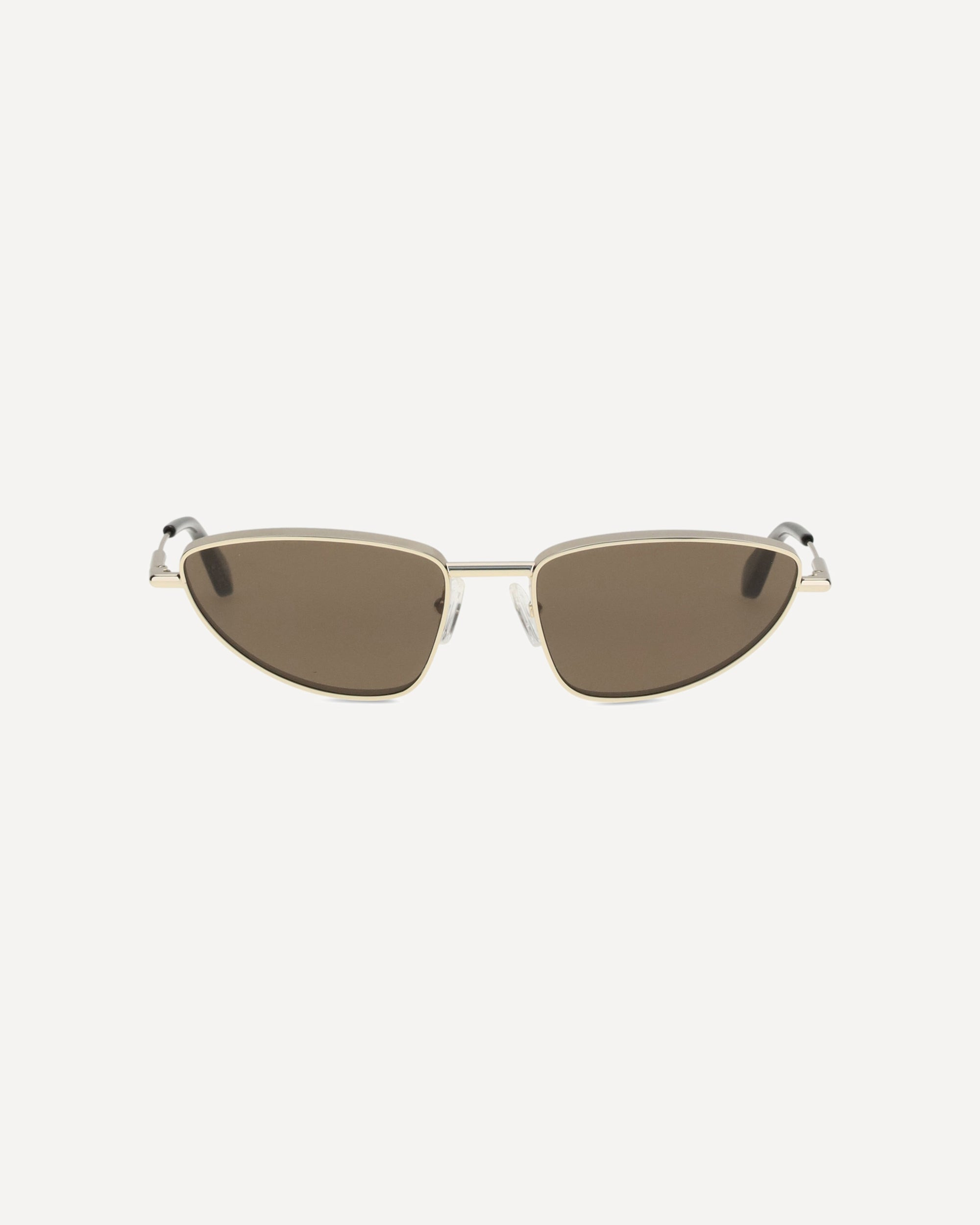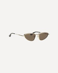 Alexander McQueen's Cat-eye Sunglasses feature a bold and refined design. Made of silver-colored metal with tone-on-tone mirrored lenses, they feature a beveled cat-eye shape and adjustable nose pads for maximum comfort. The distinctive T-shaped element is integrated on the temples, which are finished with a laser-engraved McQueen logo and acetate temple tips for a touch of contemporary elegance. DETAILS - Sku: 841899I3330_7024 - Season: AW25 - Composition: GENERAL 100% Metal Metallic Metallised - MADE IN ITALY