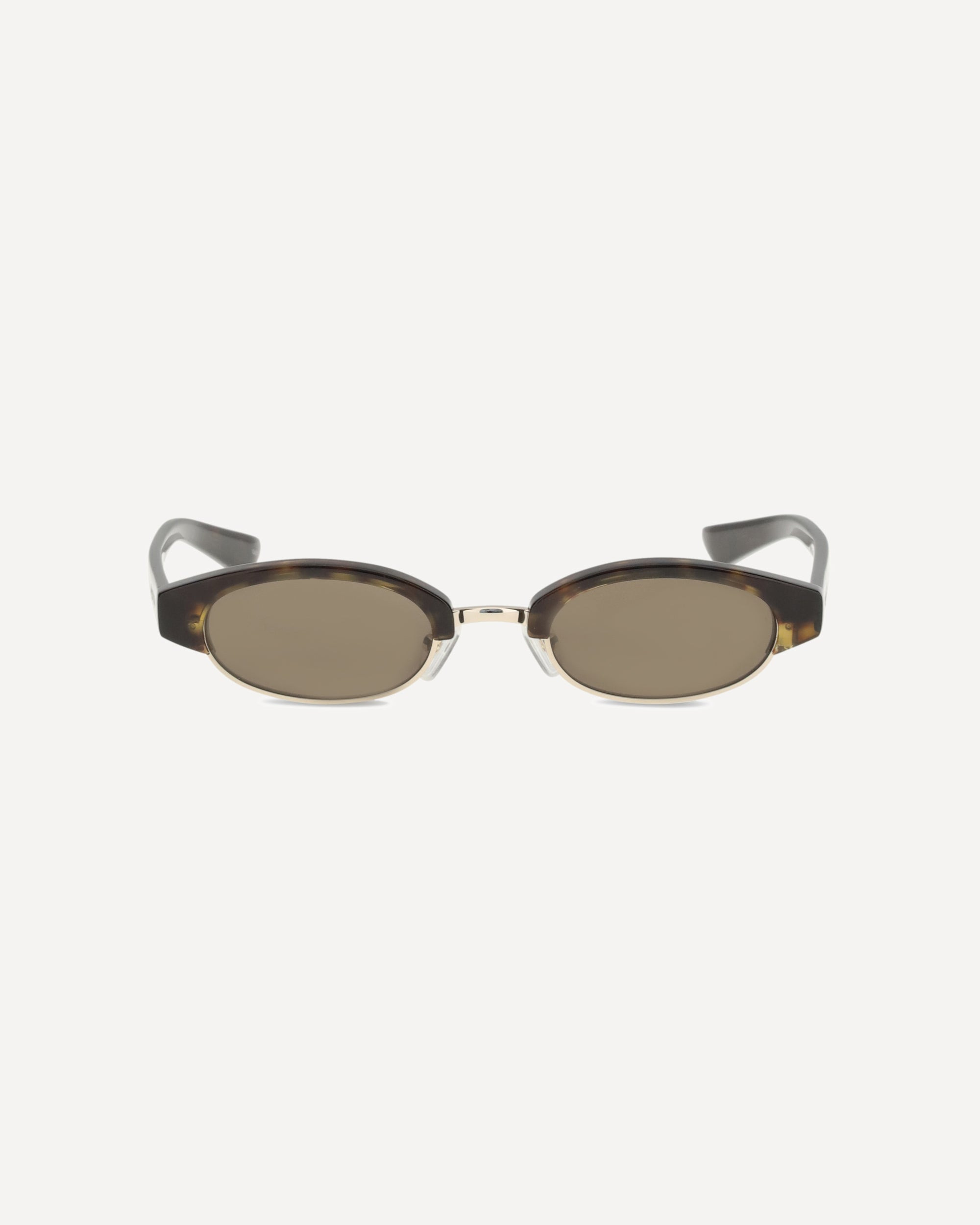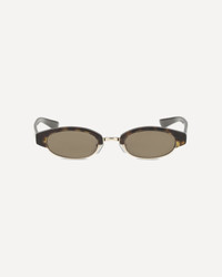 The Ellipse Sunglasses by McQueen feature a narrow oval silhouette with a semi-rimless frame and adjustable nose pads for optimal comfort. The temples are adorned with the McQueen logo engraved by laser, adding a distinctive and elegant touch. DETAILS - Sku: 841557J0749_2305 - Season: AW25 - Composition: GENERAL 100% Acetate - MADE IN JAPAN