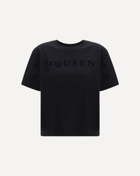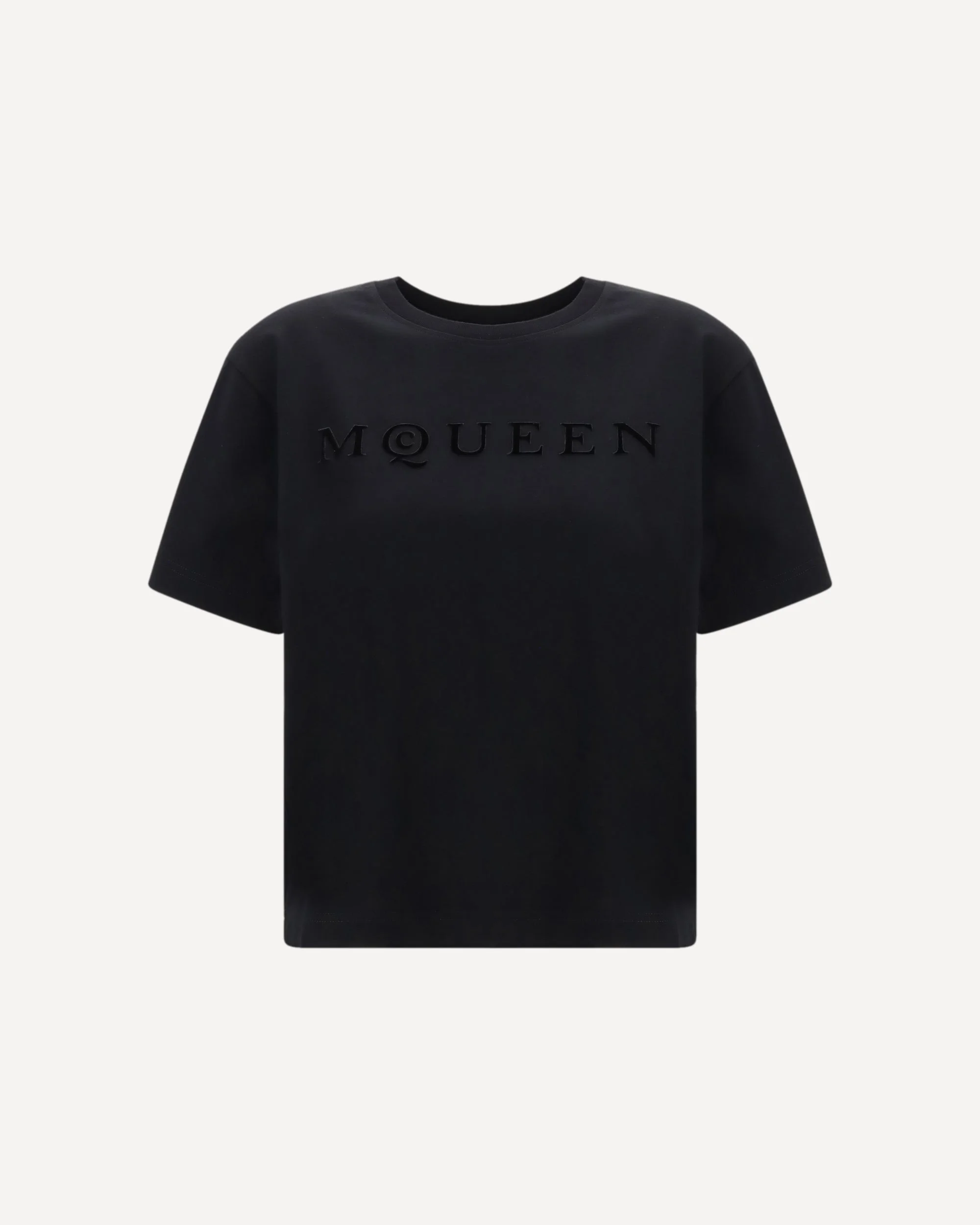 The logo T-shirt by Alexander McQueen is a clean, contemporary essential with a bold attitude. Designed with a classic crew neck and short sleeves, it features a lettered logo on the front that adds an iconic, instantly recognizable touch. A versatile piece, perfect for elevating everyday casual looks. DETAILS - Sku: 858325QLAE6_1000 - Season: SS26 - Fit: Regular - Composition: GENERAL 100% Cotton - MADE IN ITALY